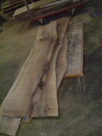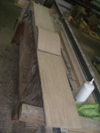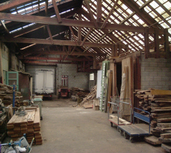 Préparation du bois avant débit, séché dans le séchoir dans le hangar de notre atelier.