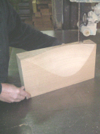 Le galbe est débité à partir de morceaux de 8 cms d'épaisseur puis assemblé aux côtés.