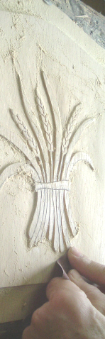 Réalisation d'une sculpture sur le panneau du bas, avant assemblage.