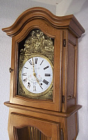 Tout comme la Louis Philippe, la Campagnarde est une Horloge Contemporaine, de style totalement opposé aux Comtoises. La structure est en 3 parties reliées les unes aux autres, la tête, le corps du milieu et le bas. Style moderne, avec ses parties galbées réalisées à partir de panneaux cintrés. Contrairement aux Comtoises, la grande porte est évidée au maximum. Sur ce modèle, les côtés du dessus ne s'ouvrent pas mais néanmoins peuvent s'enlever. Disponible en Merisier, Chêne et Noyer. (Cliquez ci dessous pour agrandir)