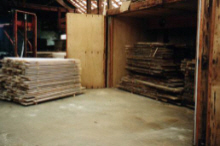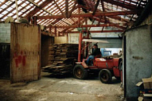 Préparation du bois avant débit, séché dans le séchoir dans le hangar de notre atelier.