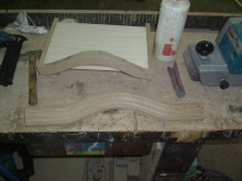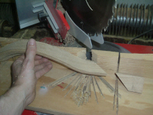 Le galbe est débité à partir de morceaux de 8 cms d'épaisseur puis assemblé aux côtés.
