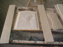 Réalisation d'une sculpture sur le panneau du bas, avant assemblage.