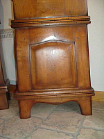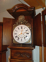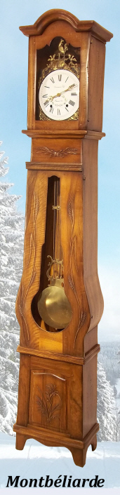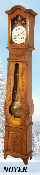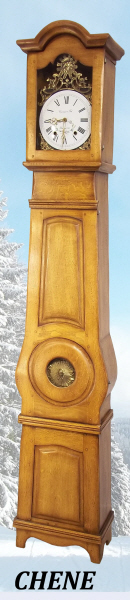 Authentique Horloge Comtoise, réplique de la Comtoise n°1, en proportions plus réduites. La corniche du dessus est différente, ainsi que la découpe de la traverse de la petite porte. Disponible en Sapin, Merisier, Chêne et Noyer massif.