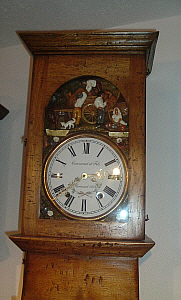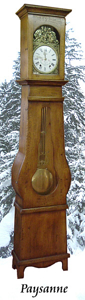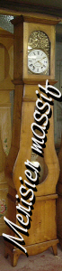 Authentique Horloge Comtoise de style rustique avec tête droite et panneau du bas d'une seule pièce. Disponible en Sapin, Merisier, Chêne et Noyer massif. ( Cliquez sur les photos pour agrandir )